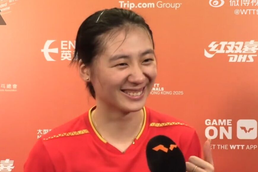 賽後陳熠坦言過往3次均不敵朱雨玲,今場抱着學習心態上陣,逐分去拼,「7局其實打得好辛苦,整個過程起起伏伏。」她認為決勝局勝負關鍵,在於自己發球及主動搶攻時「更加果斷」。首次晉身WTT總決賽8強,她亦毫不諱言,參賽前目標只是「第一場打贏就好」,沒多想後續賽程。8強將迎戰另一位師姐、世界排名第3的陳幸同,她表示只會全力以赴,希望無悔應戰。談到首次於紅館作賽,她笑言:「紅館真係好Nice。」爽朗一笑再豎起拇指,盡顯新生代球星的可愛一面。