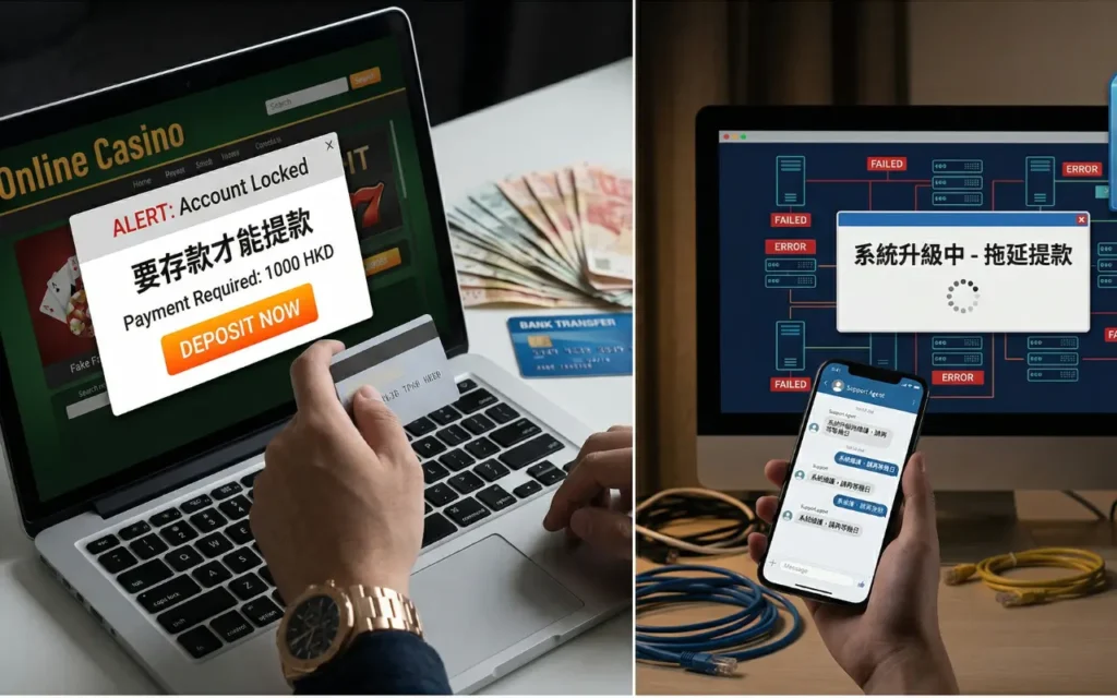 - 常見藉口: 「金流系統維護中」、「銀行接口升級」、「帳戶注單異常審核中」,總之就係叫你「再等幾日」。