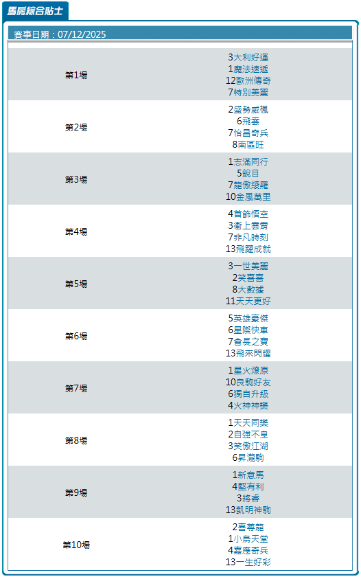07/12馬房綜合貼士路線圖 穩膽拉開防守邊線
